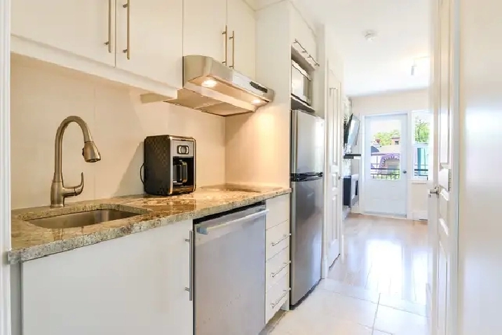 Located between Sherbrook Metro and Lafontaine Park, the building is a short walk from a grocery store and a bistro! It has a walking score of 96/100 and a bike score of 75/100. All electro is stainless, Bosch dishwasher, induction plate! Free laundry room! In the living room - electric fireplace and plasma TV! Internet and Bell TV included! It is a small apartment, perfect for 1 or 2 people (Queen bed in the bedroom). No annimals allowed. A front balcony and a large private furnished terrace at the back yard.