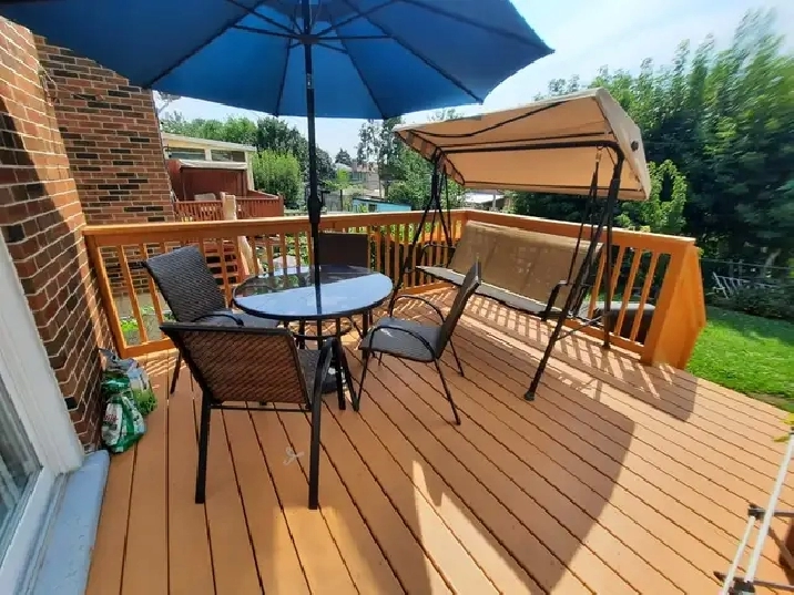 Large private room at 1st floor furnished with bed, chest drawer and closet with private deck access (Deck furniture's are not included) is available for rent.