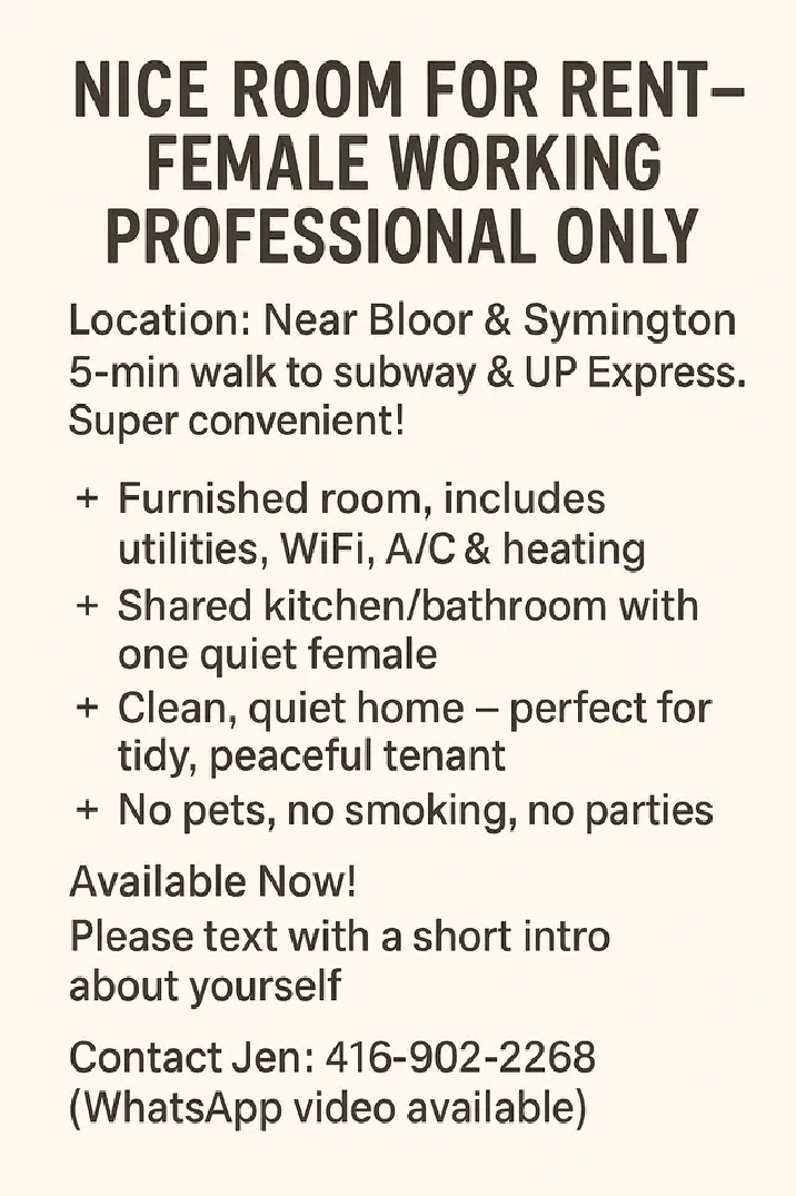 Contact: Jen – 416-902-2268 (Text or WhatsApp welcome) Please send a short introduction about yourself.