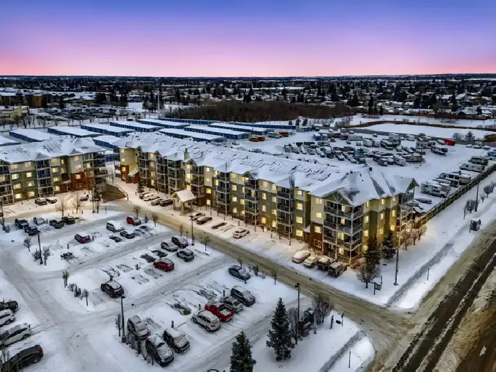 Pride of ownership with this immaculate 2014 built 2-bedroom, 2-bathroom plus Den, 3rd floor condo in Edmonton's North West Community of Baranow. Steps to everything you need such as shopping, transit and amenities. The entryway is welcoming, with a large closet and open layout which showcases the west facing windows full of natural light. The bedrooms are on opposite sides for privacy. The master suite has a walk-in closet and a 3-piece ensuite with a large glass door shower. The second bedroom has a 4-piece bath next to it. The kitchen is upgraded with granite counter-tops, a full-height tile backsplash, and quality cabinets. There’s also in-suite laundry. Large west facing balcony is an ideal spot for relaxing in the evenings. Solara provides an onsite gym. Titled energized parking stall is included with this property. This condo is designed for comfort and style. Don’t miss your chance to own a home in the Solara At Skyview! Low condo fee $410.36 which includes all utilities except for electricity.